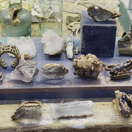 Materiales : siempre es cobre y diferentes minerales como cuarzo amatista, esmeralda.