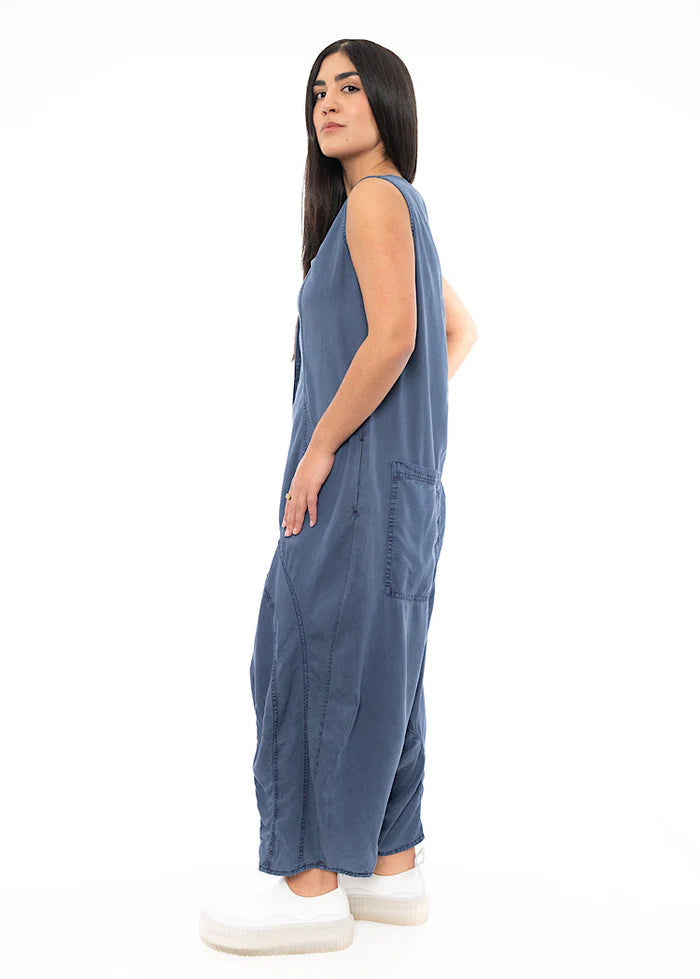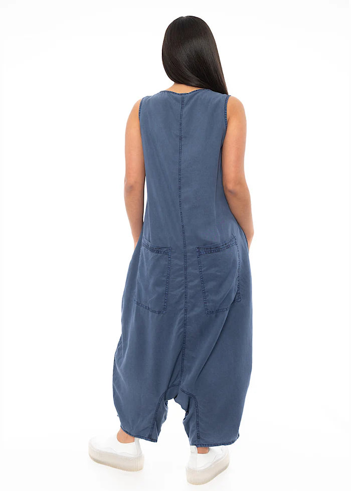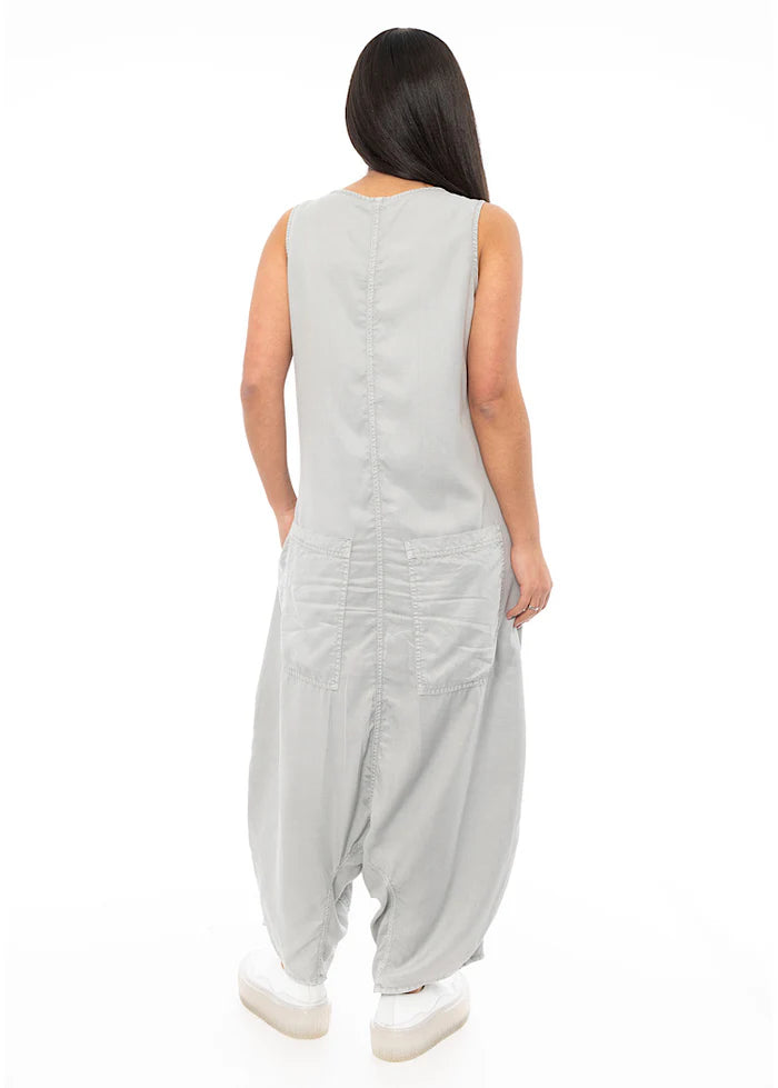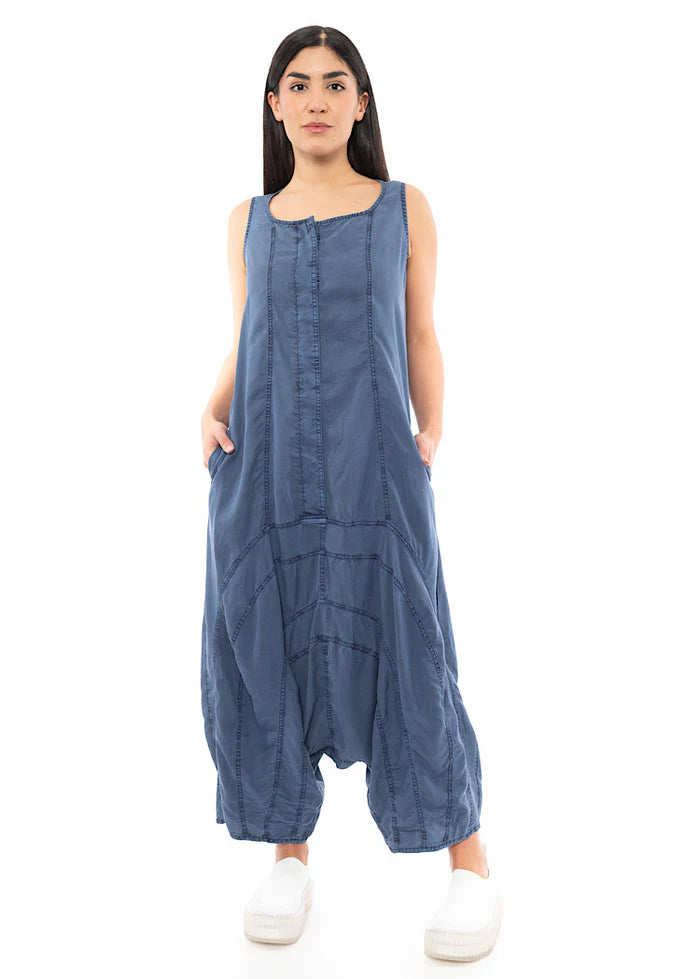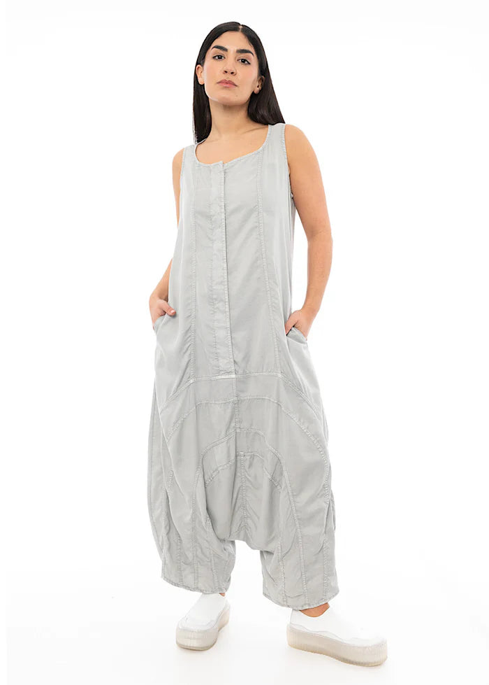 Mono ligero de tiro bajo de RUNDHOLZ BLACK LABEL. Incluye diseño sin mangas, cuello redondo, bolsillos laterales y detalles en las costuras para darle forma. Se abrocha con botones en la parte delantera.