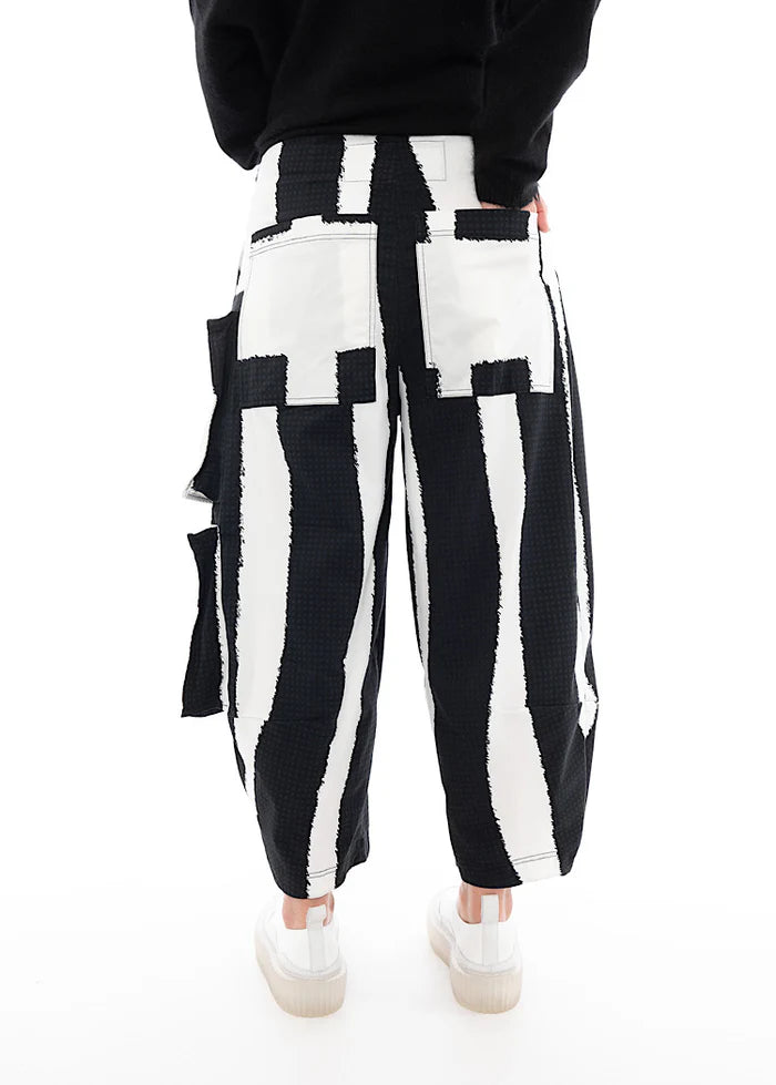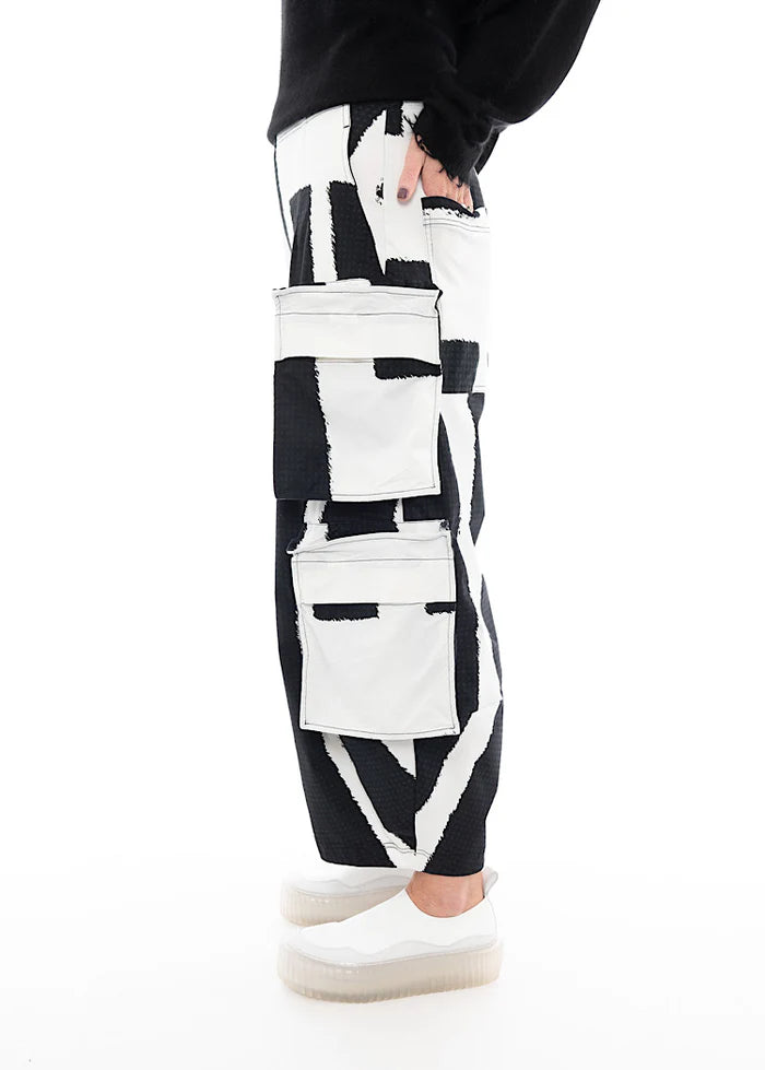 Pantalón de pierna globo de RUNDHOLZ BLACK LABEL en el característico tejido Techno elástico. Incluye cinturilla totalmente elástica, bolsillos laterales grandes y un diseño totalmente estampado.