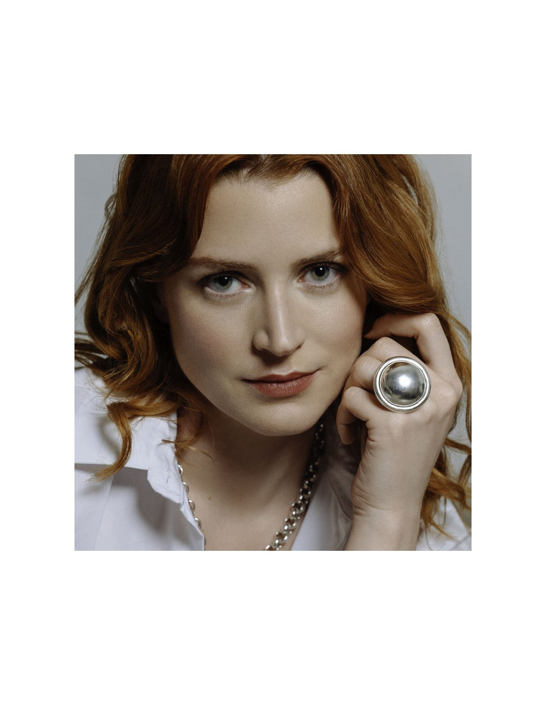 Anillo Sacha bañado en plata de la Colección 25th de Ciclón jewelry. Diseño maxi con esfera de 40 mm.