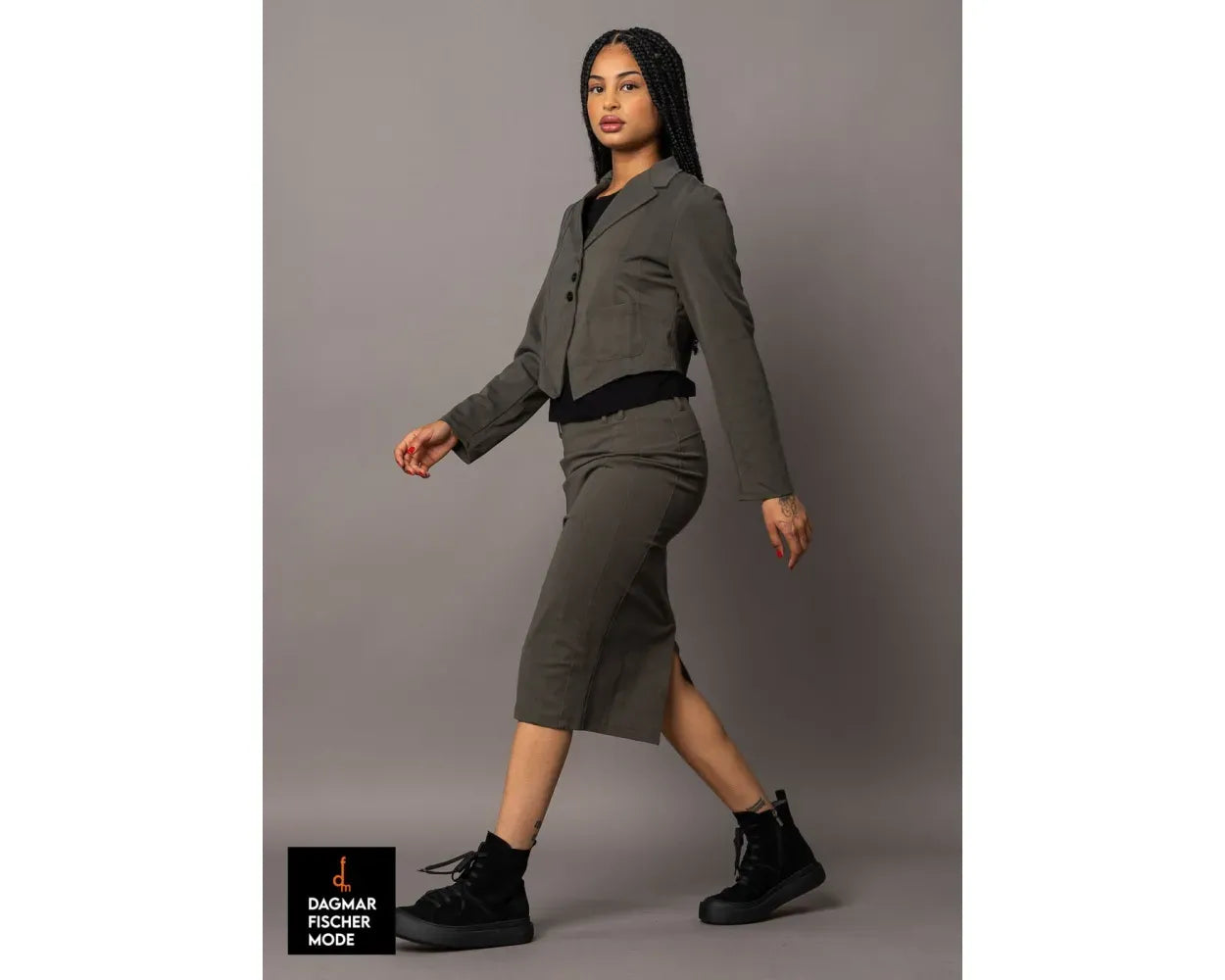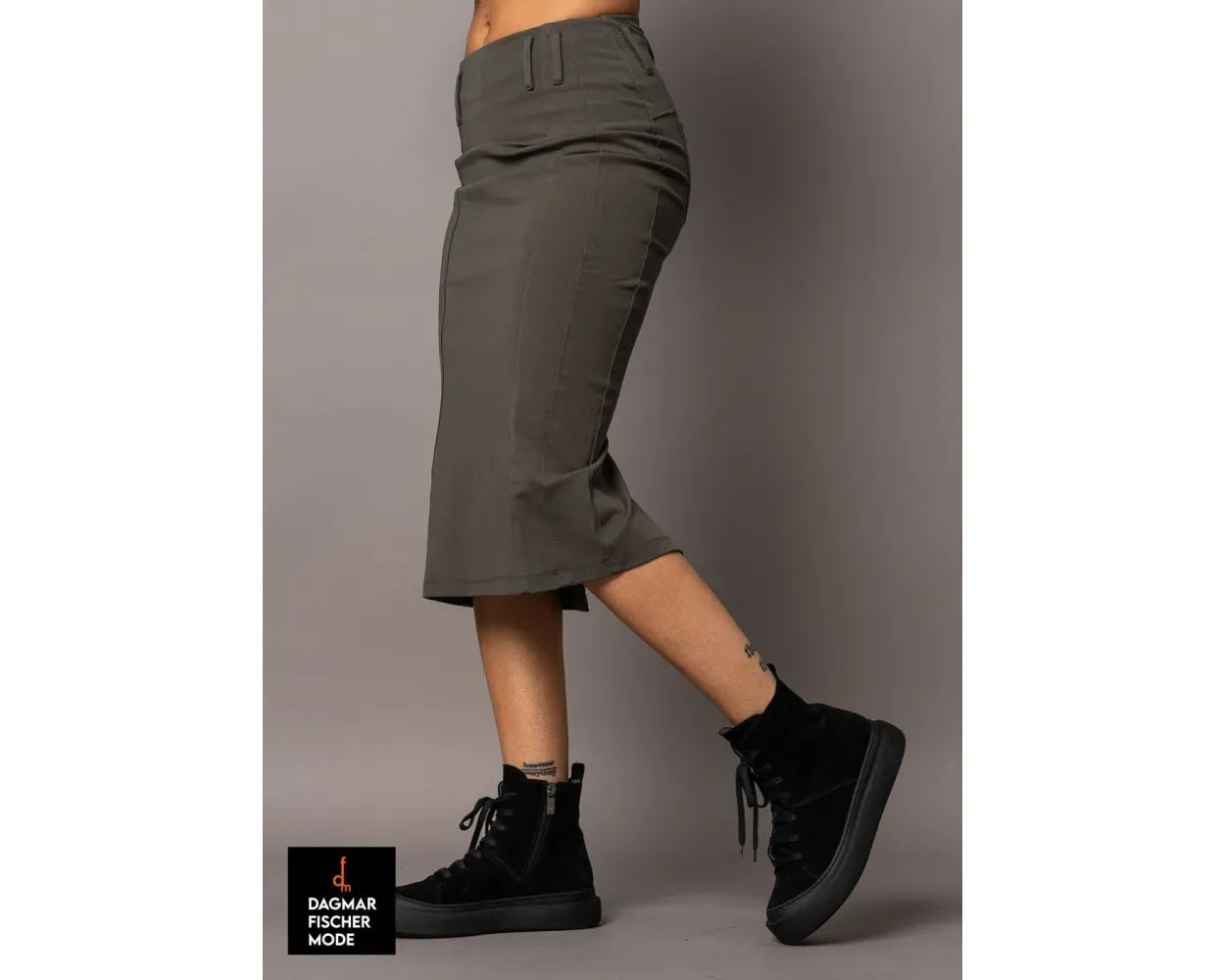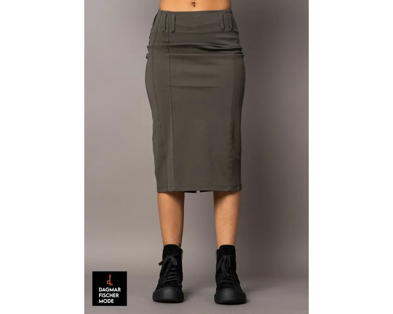 Falda tubo con presillas para cinturón, con bolsillos traseros.