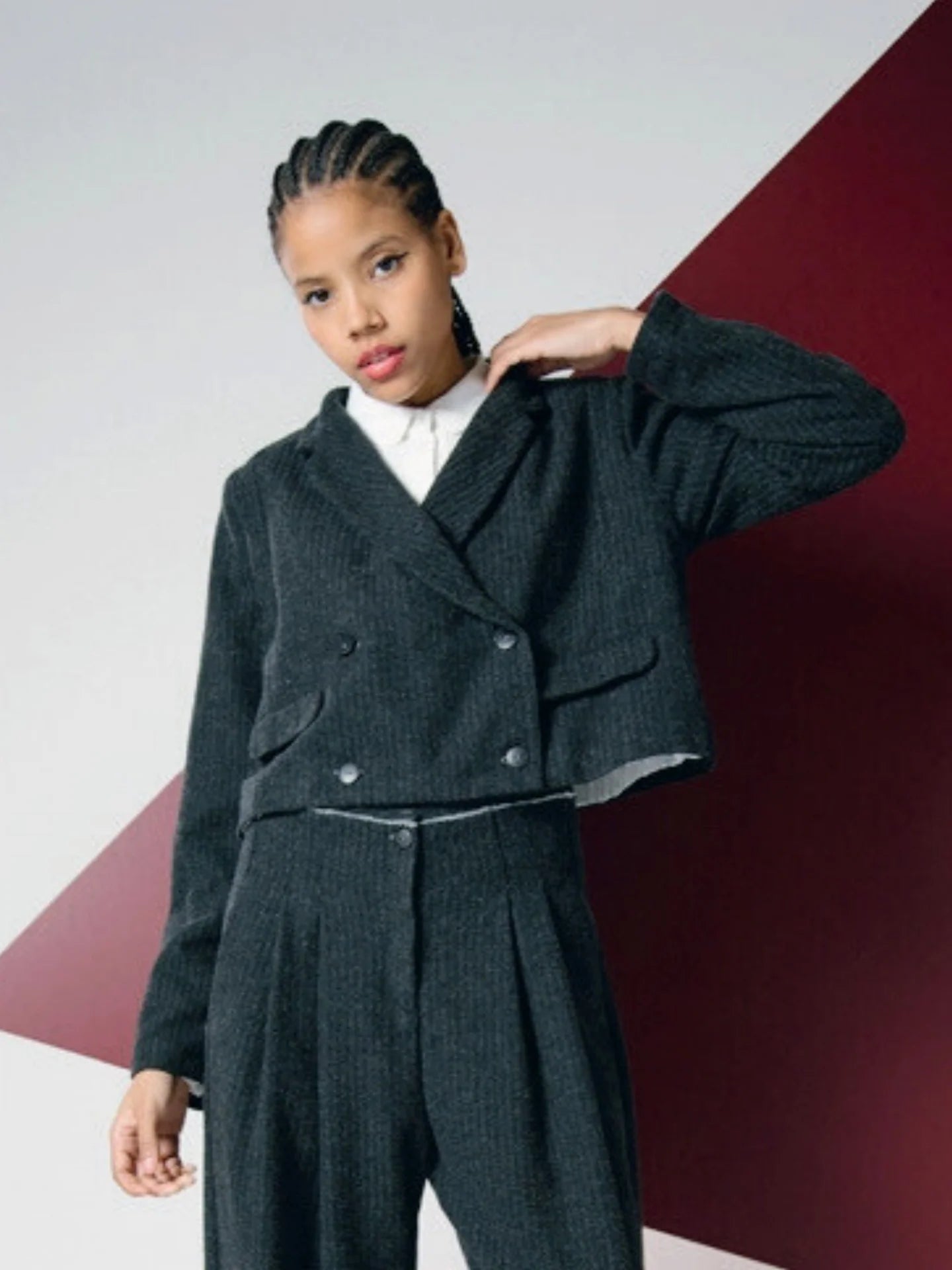Esta americana combina un elegante tejido de lana gris con rayas claras y un corte moderno y recto que realza tu figura a la vez que le da un toque divertido a tu look. Perfecta para darle un aire más formal a tu ropa de trabajo o un toque sofisticado a tus conjuntos informales, está diseñada para que te muevas con comodidad durante todo el día. Tanto si la combinas con vaqueros como con pantalones, esta americana aporta un aire dinámico y seguro a cualquier conjunto, convirtiéndola en una prenda versátil y con mucho estilo.