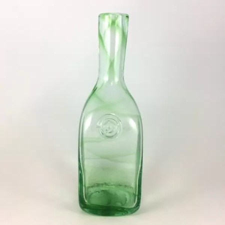 Elegante y versátil, esta botella de vidrio soplado artesanal es ideal para acompañar tu mesa o decorar cualquier ambiente. Su forma alargada y base cuadrada le brindan una estética moderna y una excelente estabilidad.
