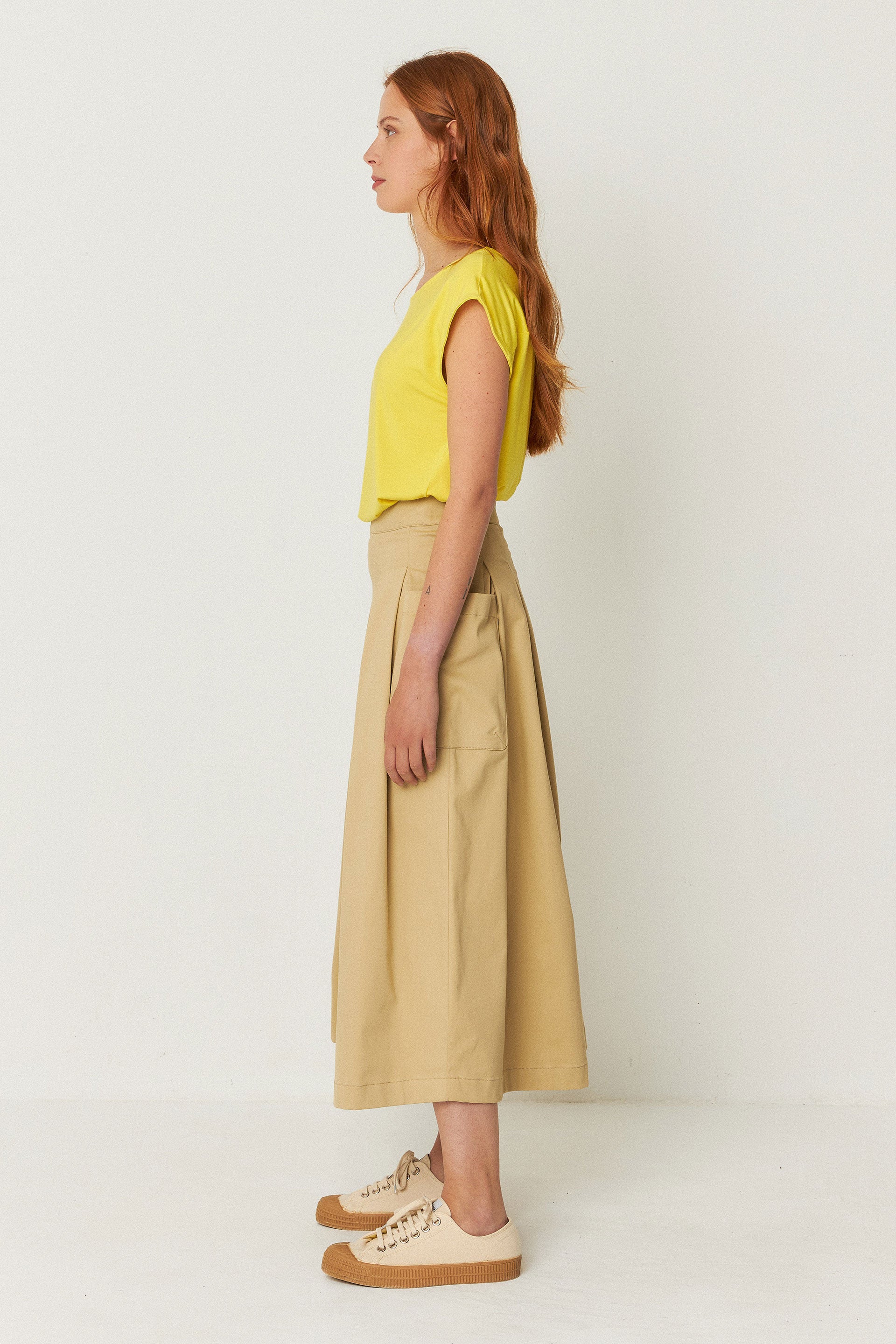 Camiseta de manga corta con cuello redondo. Es de corte recto y tiene una pequeña abertura decorativa en la espalda.