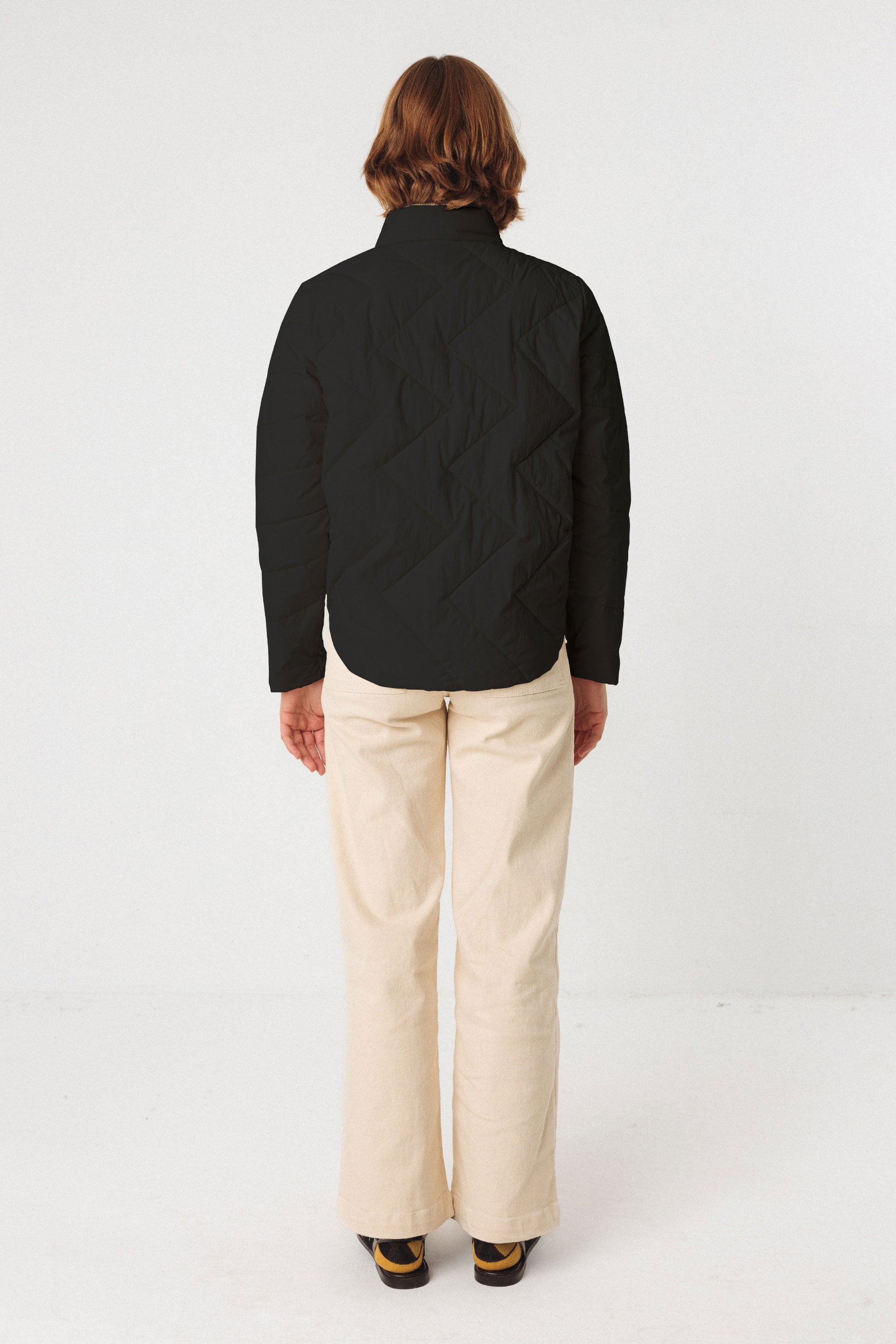 Chaqueta acolchada corta de cuello subido y corte recto. Relleno de abrigo Dupont Ecodown y exterior hidrófugo.