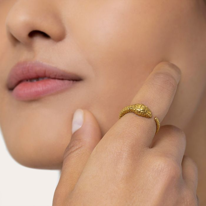 Anillo abierto serpiente, de latón, testeado libre de níquel.