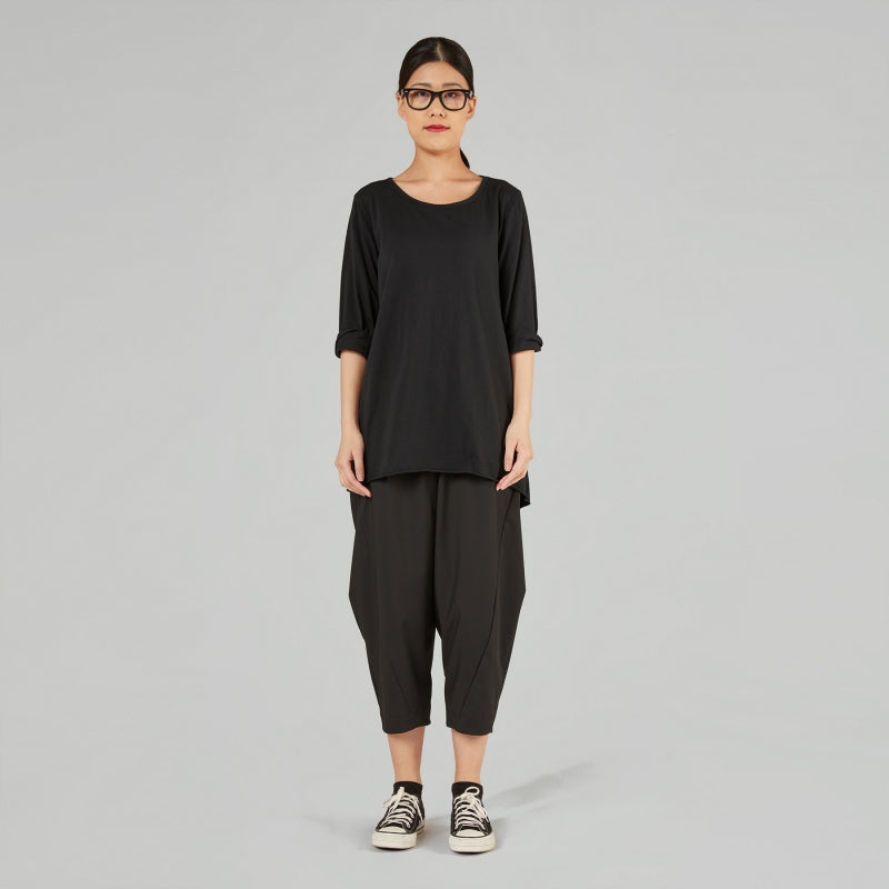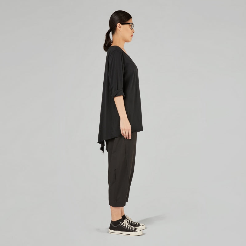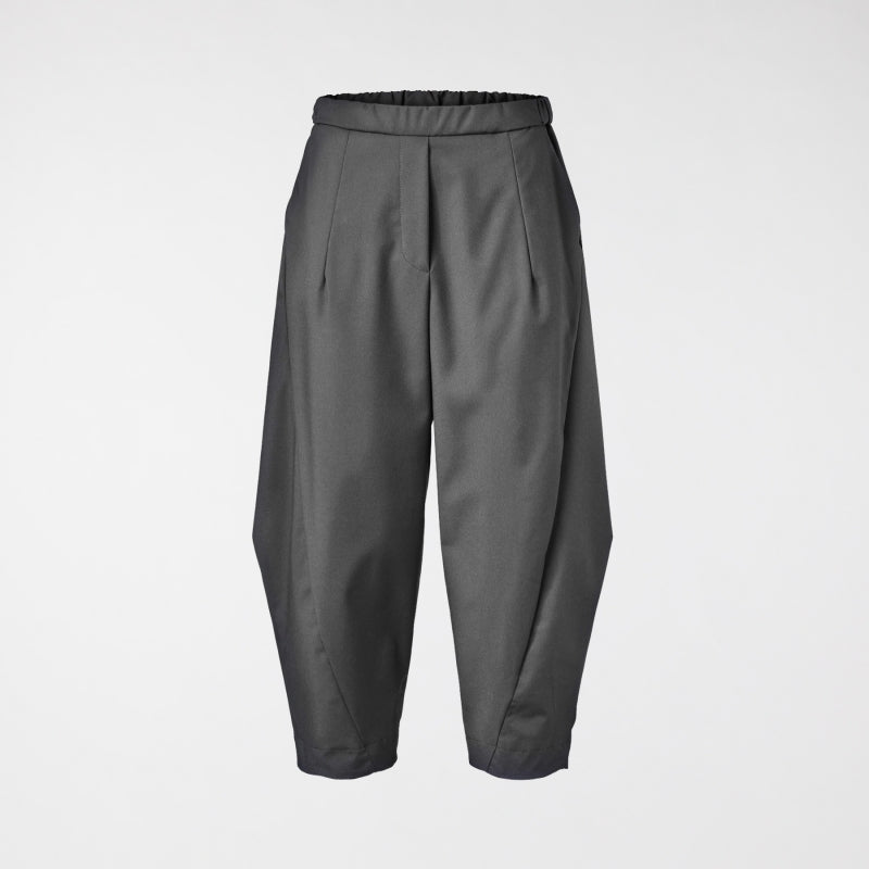 Pantalones de punta en tejido elegante de mezcla de viscosa. Cinturilla elástica en la cintura. Falsa bragueta. Bolsillos laterales ocultos. Entrepié suave. Pierna ancha ligeramente estrecha en el tobillo. Ajuste cómodo.