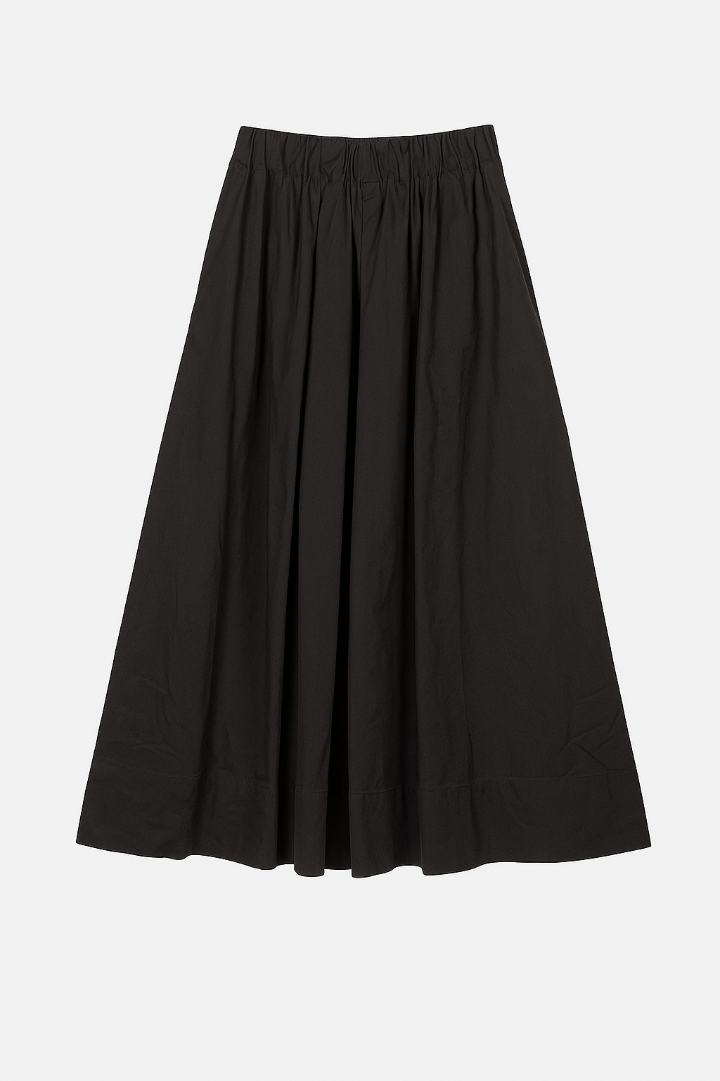 Pantalón negro amplio con caída fluida y cintura elástica, cómodo y versátil para crear tanto looks casuales como elegantes.